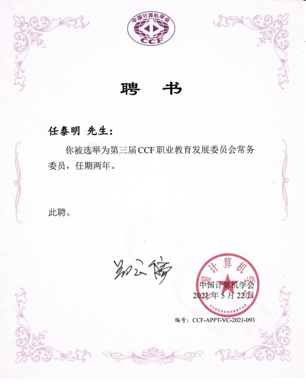 本次会议由中国计算机学会(CCF)主办,CCF职业教育发展委员会承办,山东电子职业技术公司协办。会议包含“课堂革命”、“课程思政”等专题论坛。期间,召开了第三届CCF VC换届会议及三届一次常委扩大工作会议,通过大会选举,公司信息处理与控制工程公司任泰明教授当选为第三届CCF职业教育发展委员会常务委员。
